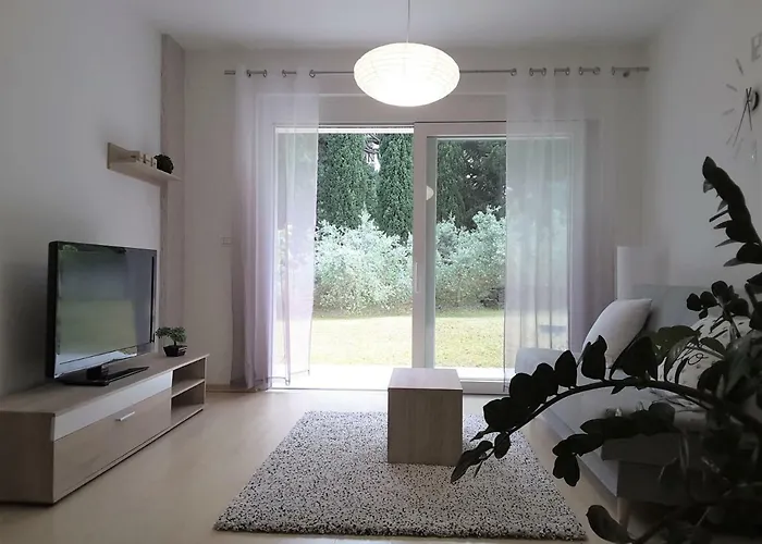 Apartment Luna, Izola, San Simon van 75 m^2 ligt op ongeveer 8 minuten wandelafstand van plaza Delfin en heeft een patio en een zitruimte. Gasten die met de auto reizen kunnen gebruik maken van parkeerplaatsen ter plaatse.